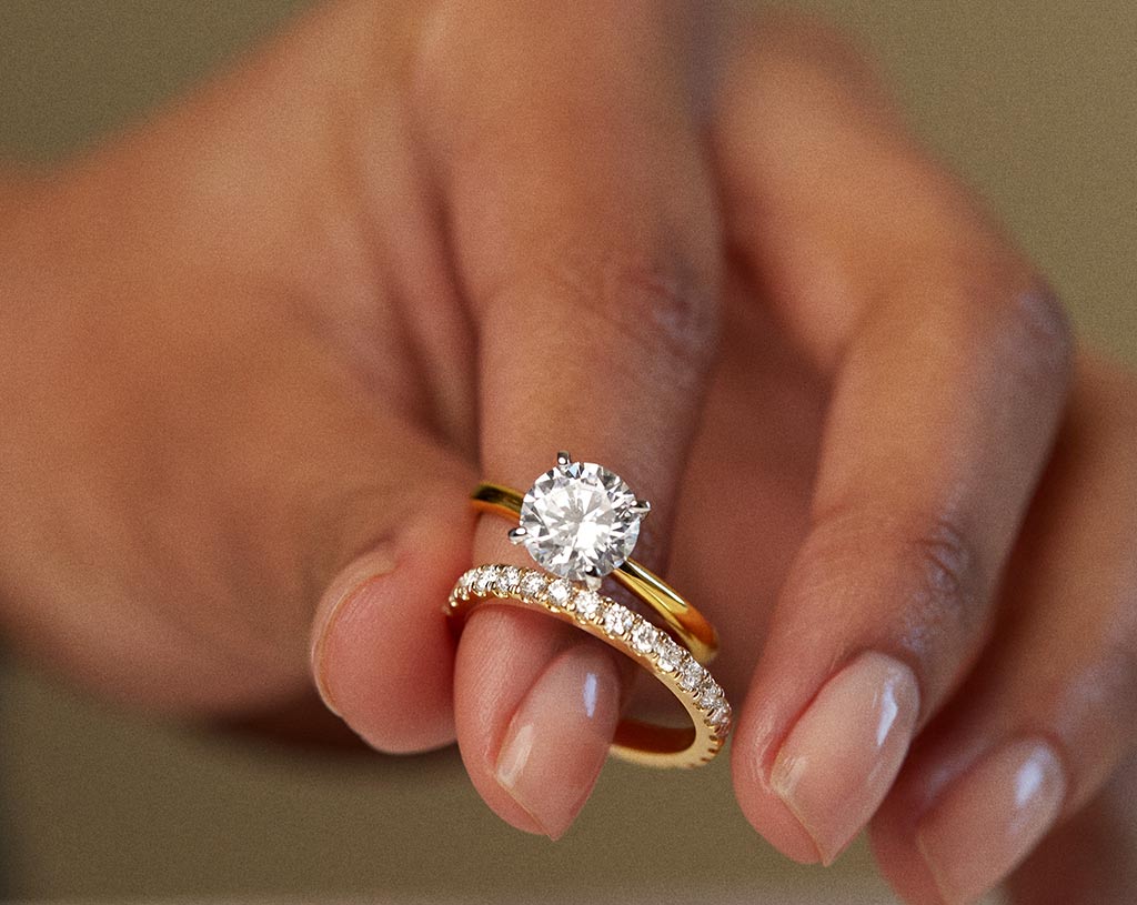 One of the biggest trends in engagement rings today is oval shape diamonds. Serena, Simone, Blake, they’re all oval fans. Oval diamond rings are famously finger-flattering: they make your hands look long and slim. We like an oval lab diamond engagement ring with a pave band and halo that makes the center stone look larger. The Ellipse Oval Lab Diamond Engagement Ring with a one carat lab created center diamond is lovely in 14K white gold and is only $2549. It has a full carat and a half of lab-grown diamonds for plenty of sparkle.