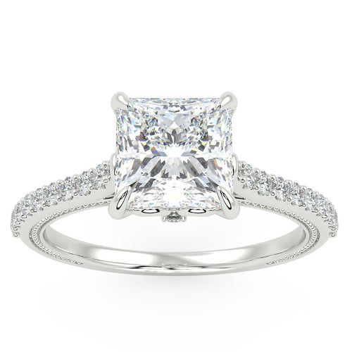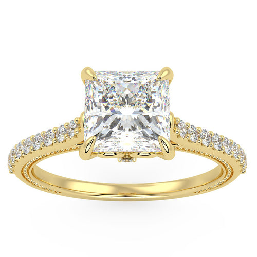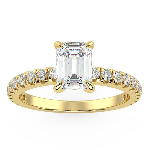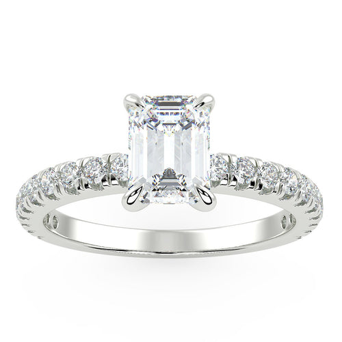Like a hall of mirrors a beautiful emerald cut lab grown diamond reflects your sophisticated style. The Europa Engagement Ring, inspired by the icy moon of Saturn, is designed to perfectly complement the center stone with a refined pave band. Simple but and enduring, it’s the perfect symbol of your love. Browse all Universe Engagement Rings.